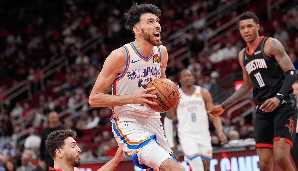 但谁能想到,第四节直接变成了雷霆的单方面屠杀和火箭的集体梦游!比赛刚进入末节,雷霆就像按下了加速键,华莱士开场连中两记三分,米切尔紧随其后三分命中,不到3分钟就打出11-4的攻击波,分差瞬间来到9分。乌度卡赶紧叫暂停调整,结果暂停回来一点用都没有,火箭的进攻彻底停滞,杜兰特被雷霆的“牢笼战术”锁得死死的——多尔特全场贴防,卡鲁索无缝衔接,只要KD一进三秒区,立马就有两三个防守球员围上来,逼得他要么高难度出手要么勉强传球,末节4投仅1中,全场23投7中三分5中0,真实命中率低到离谱的37.7%。